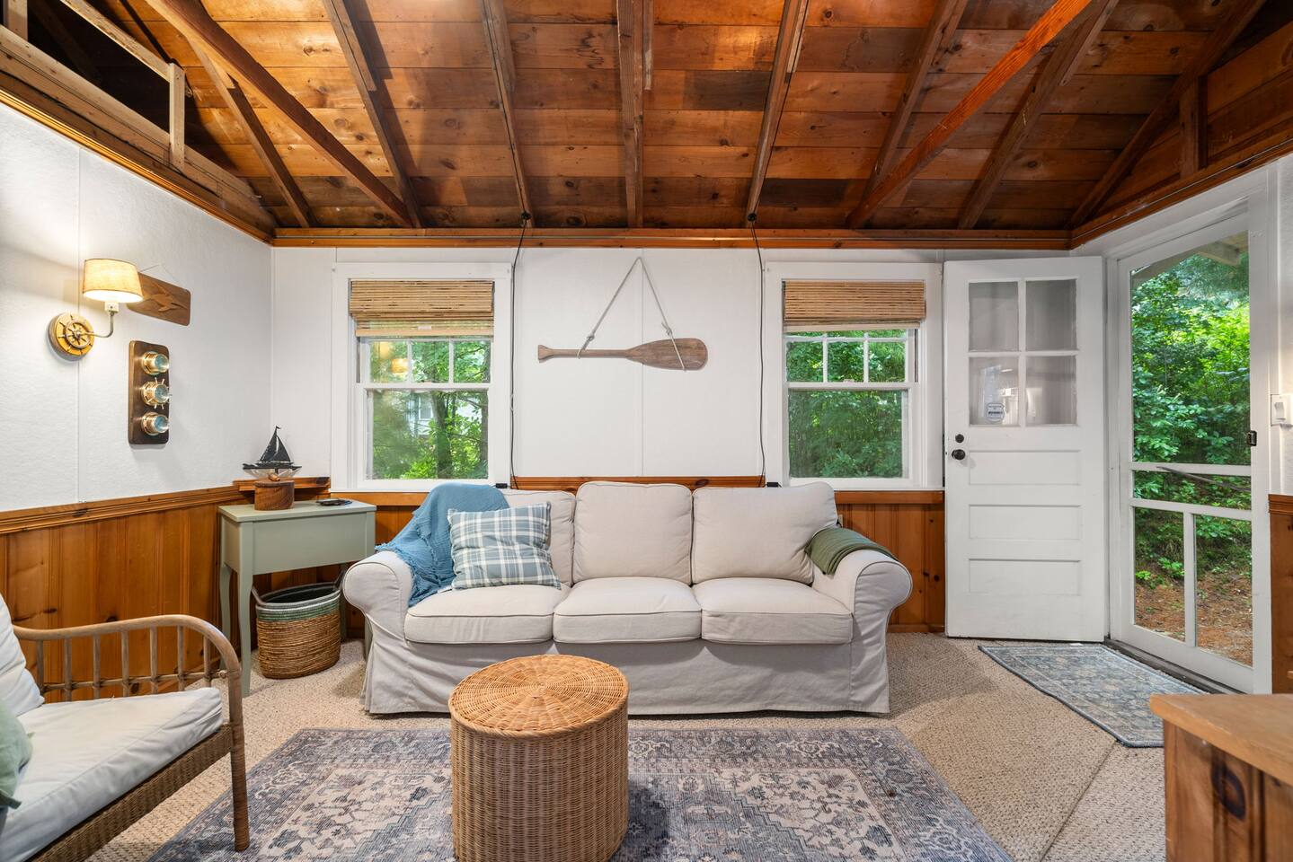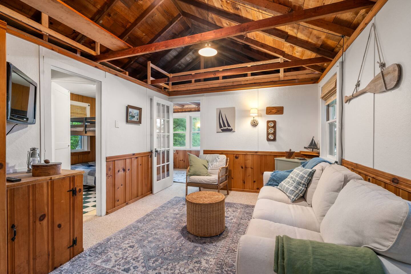 Enjoy a peaceful lakeside escape at this charming 4BR/1BA cottage in Plymouth. The Little Red Cottage offers a quiet retreat with the lake right at your doorstep while still being a short drive from the beaches of the Atlantic. Perfect for a relaxing getaway and family stay, this cozy cottage is designed for rest, inspiration, and enjoying nature. Sagamore Beach – 10 min drive Cape Cod Canal Bike Path & Walkway – 12 min drive White Horse Beach- 18 min drive Plimoth Patuxet Museums– 25 min drive KEY FEATURES: • Lakefront access – step outside and enjoy the water just steps away • BBQ grill with lakeside patio seating – perfect for outdoor meals with a view • Cozy fire pit area – ideal for relaxing evenings under the stars • Kid-friendly – great for family getaways • Outdoor shower – convenient after lake swims or beach trips ✦ ✦ ✦ BEDROOM✦ ✦ ✦ • Bedroom 1: Cabin main floor - day bed that can sleep one (1) • Bedroom 2: Cabin main floor - 2 twin bunks • Bedroom 3: Cabin main floor - Queen bed w/ views of the lake ✦ ✦ ✦ BATHROOM✦ ✦ ✦ • Bathroom 1: you must walk down the stairs outside from the living space to get to the bathroom downstairs. For bathing, the shower is outdoors in a stall around the corner from the entry to the kitchen. ✦ ✦ ✦ KITCHEN DINING AND LIVING AREA✦ ✦ ✦ • Fully equipped kitchen – everything you need to prepare meals • Dining table for 4 – perfect for casual meals or morning coffee • Cozy central living room – comfortable space for relaxing downtime ✦ ✦ ✦ OUTSIDE SPACE ✦ ✦ ✦ • Adirondack chairs – perfect for relaxing by the water • BBQ grill – ideal for outdoor cooking and lakeside meals • Private boat dock – enjoy direct access to the lake • Fire pit – great for cozy evenings outdoors. We stock firewood periodically; if available, you’re welcome to use it. We recommend bringing extra wood if you plan to have a fire. ✦ ✦ ✦ WHAT TO EXPECT ✦ ✦ ✦ • The cabin is not heated and is seasonal (late spring–early fall). • Nearby cabins and lake activity mean you may see or hear others. • Traffic can be heavy near the Sagamore & Bourne Bridges during peak Cape Cod travel times. • All roads to the cabin are paved; no special vehicle needed. • Parties, smoking, or house rule violations may result in a $1,000 fee. • Starter kit provided: towels, shampoo, hand soap, toilet paper, paper towels, and trash liners. • Parking available in front of the cabin for up to 2 vehicles. BOOK YOUR STAY TODAY and experience the perfect balance of World Cup excitement and a peaceful lakeside getaway!